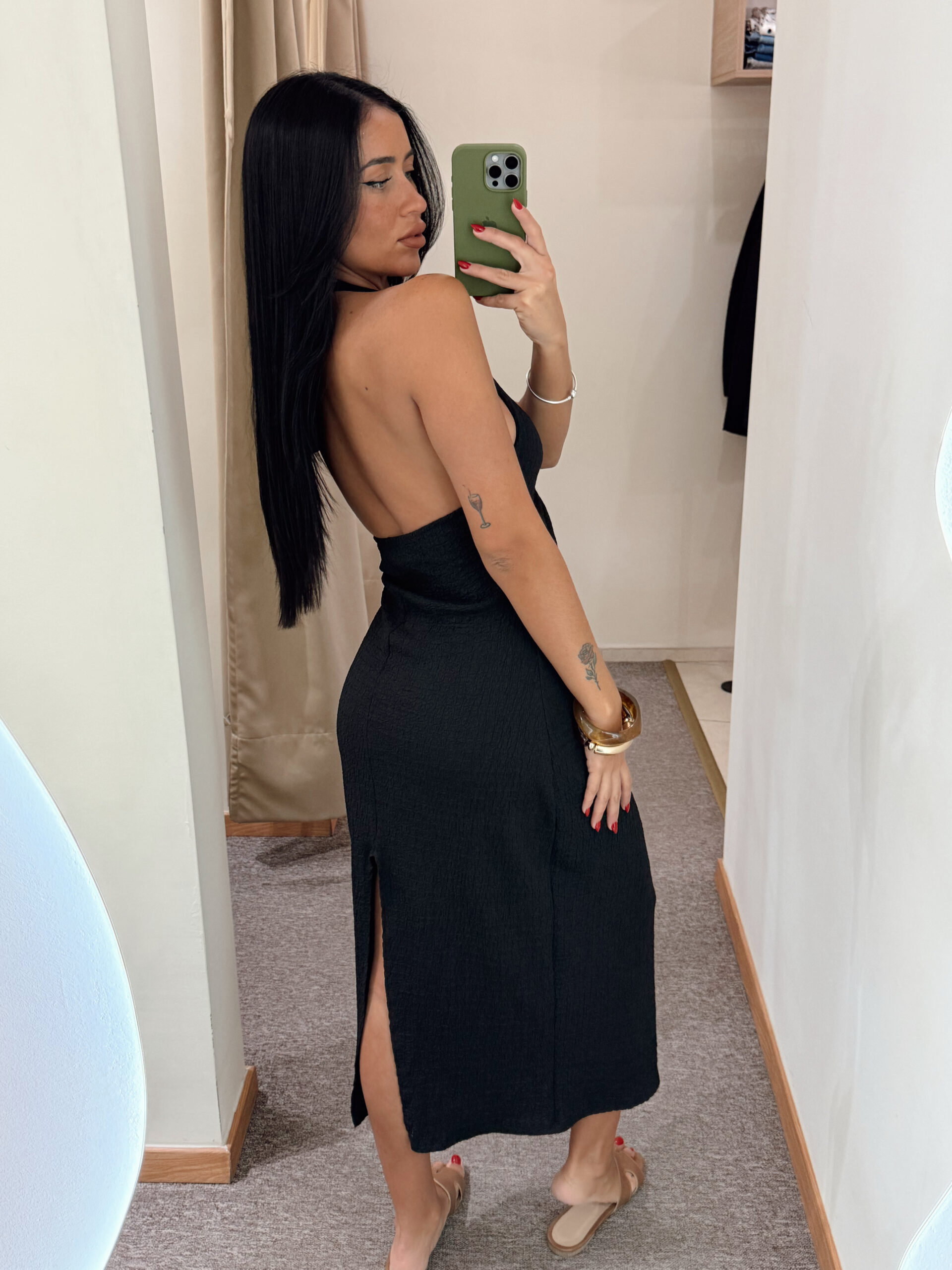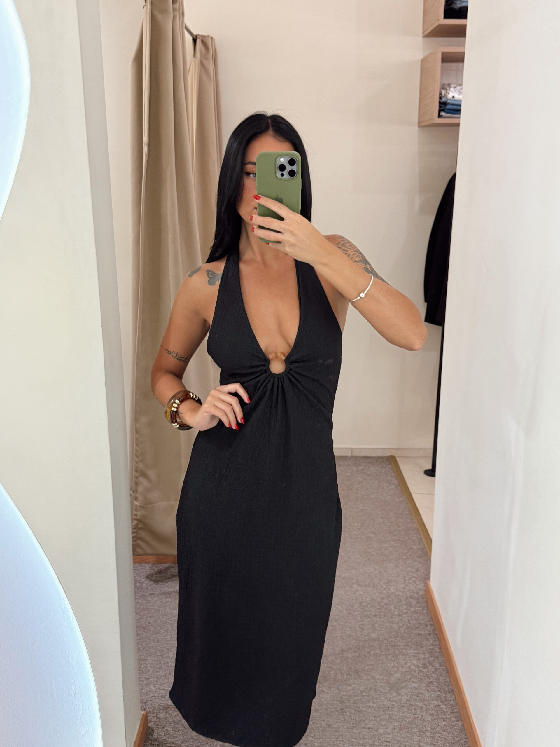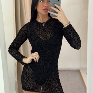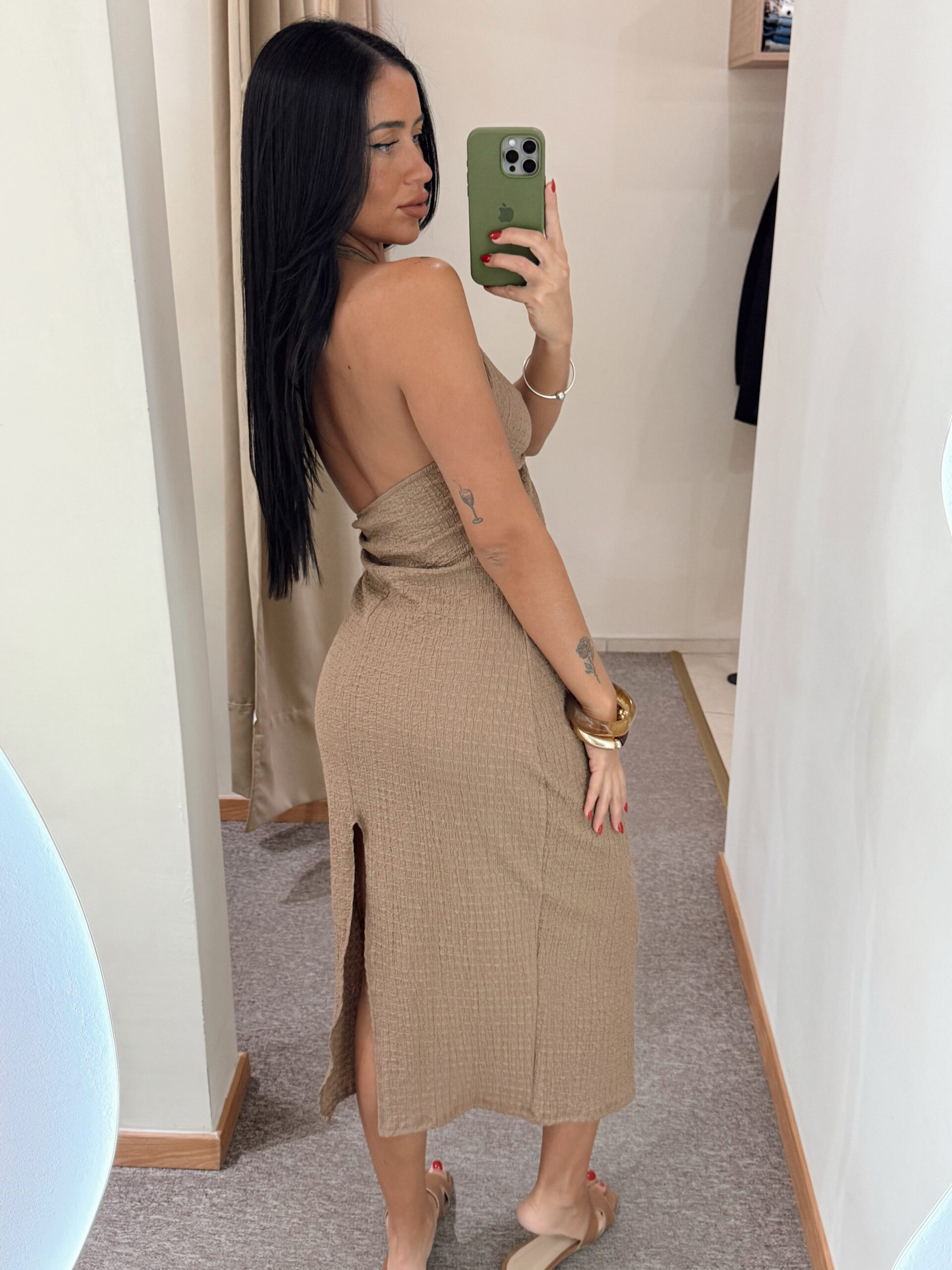 Vestido con accesorio y espalda descubierta. Talle único elastizado